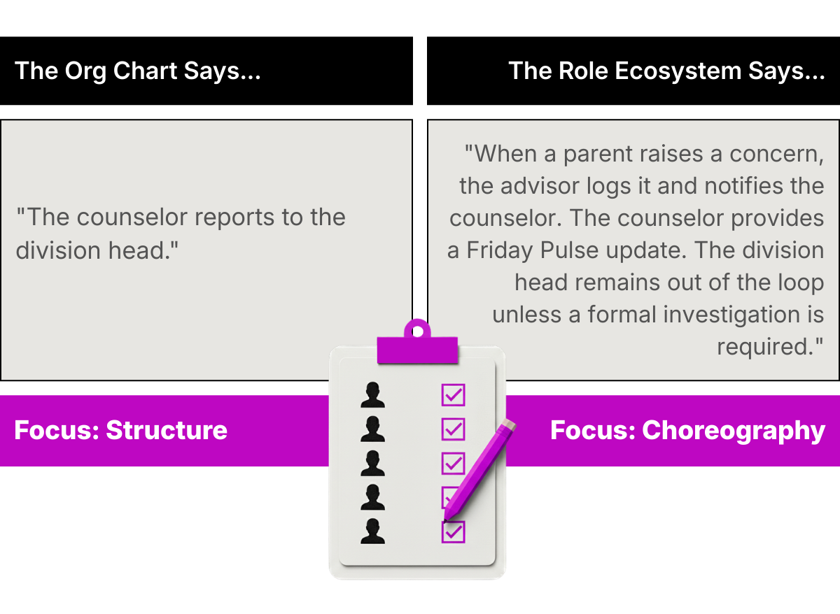 Four different symptoms. One diagnosis: role legibility, or the ability for every person in your school community to understand who does what, why, and how those roles connect in real time.